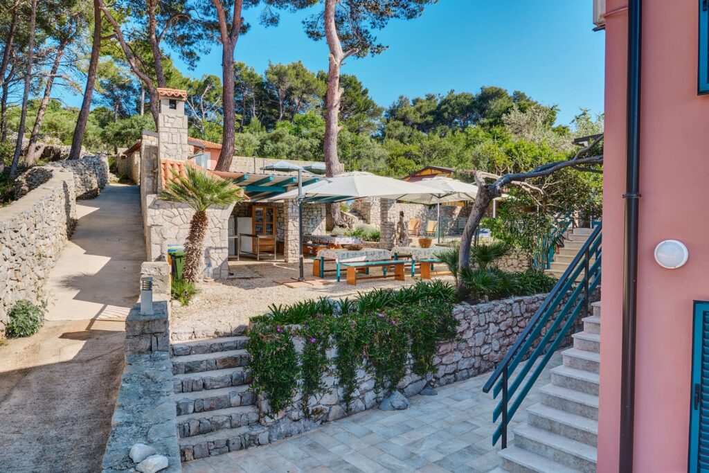 S pogledom na slikovitu uvalu Rovenska u Velom Lošinju, okruženu stoljetnom borovom šumom u podnožju pitomog brežuljka, Residence Nevenka je ugodno i udobno mjesto koje nudi gostoprimstvo zahvaljujući udobnim i elegantnim sobama i stanovima. U vanjskim prostorima nalaze se veliki zajednički dnevni boravci u kojima možete pronaći potpuno opremljenu kuhinju na otvorenom, ugrađeni roštilj, stolove i ležaljke za trenutke autentičnog opuštanja. Mjesto koje predstavlja mjesto susreta mladih i starih koji se mogu družiti i igrati u potpunoj sigurnosti i spokoju.