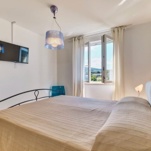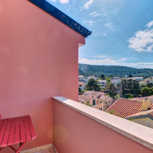 Apartman “Corallo” ima potpuno opremljenu kuhinju, dvokrevetnu sobu, kupaonicu s tušem i bideom te terasu s pogledom na uvalu Rovenska i okolno brdo. Kompaktan i udoban, prostran, idealan za 2 osobe.