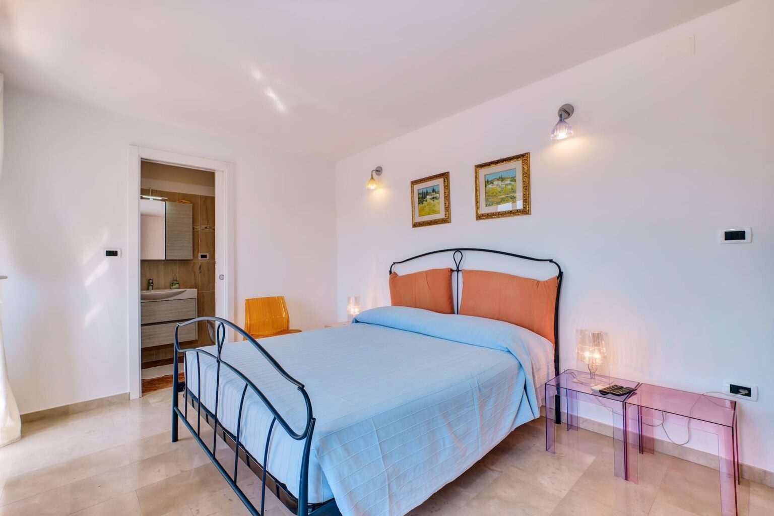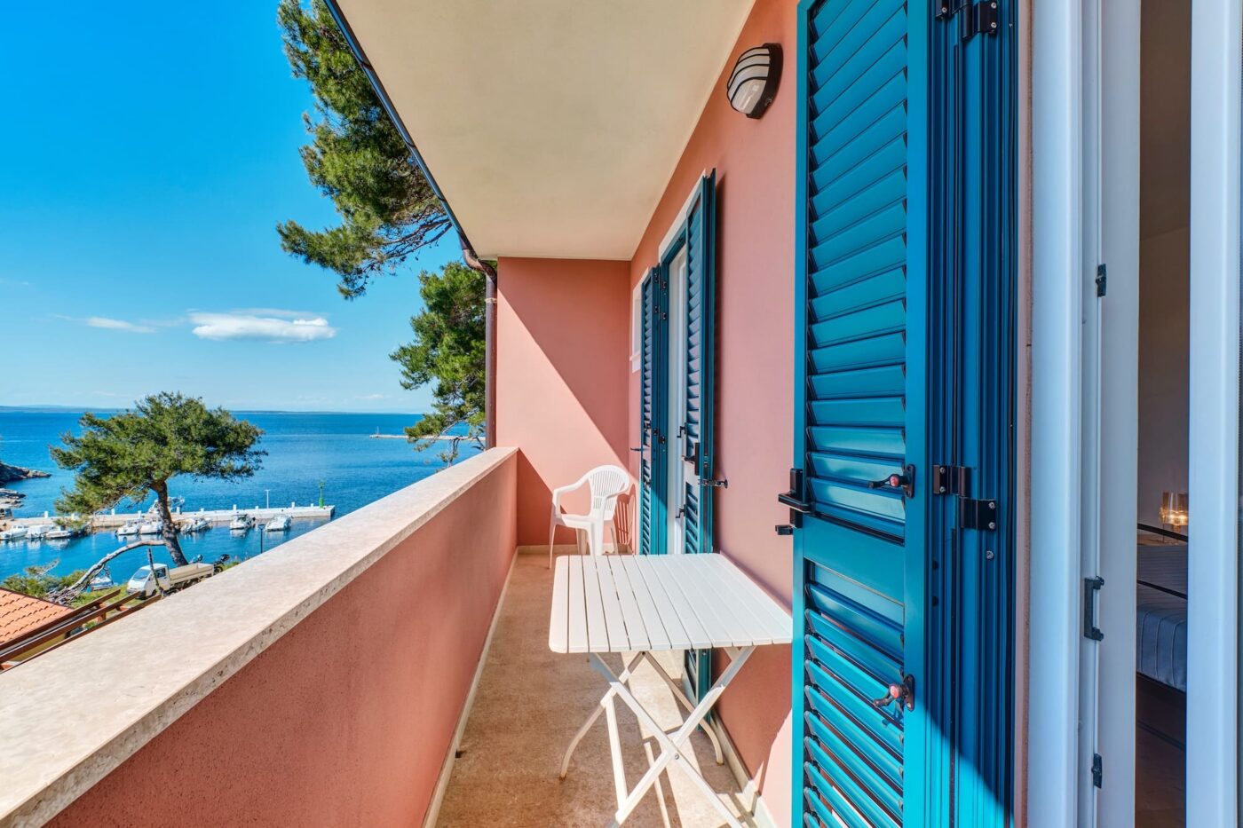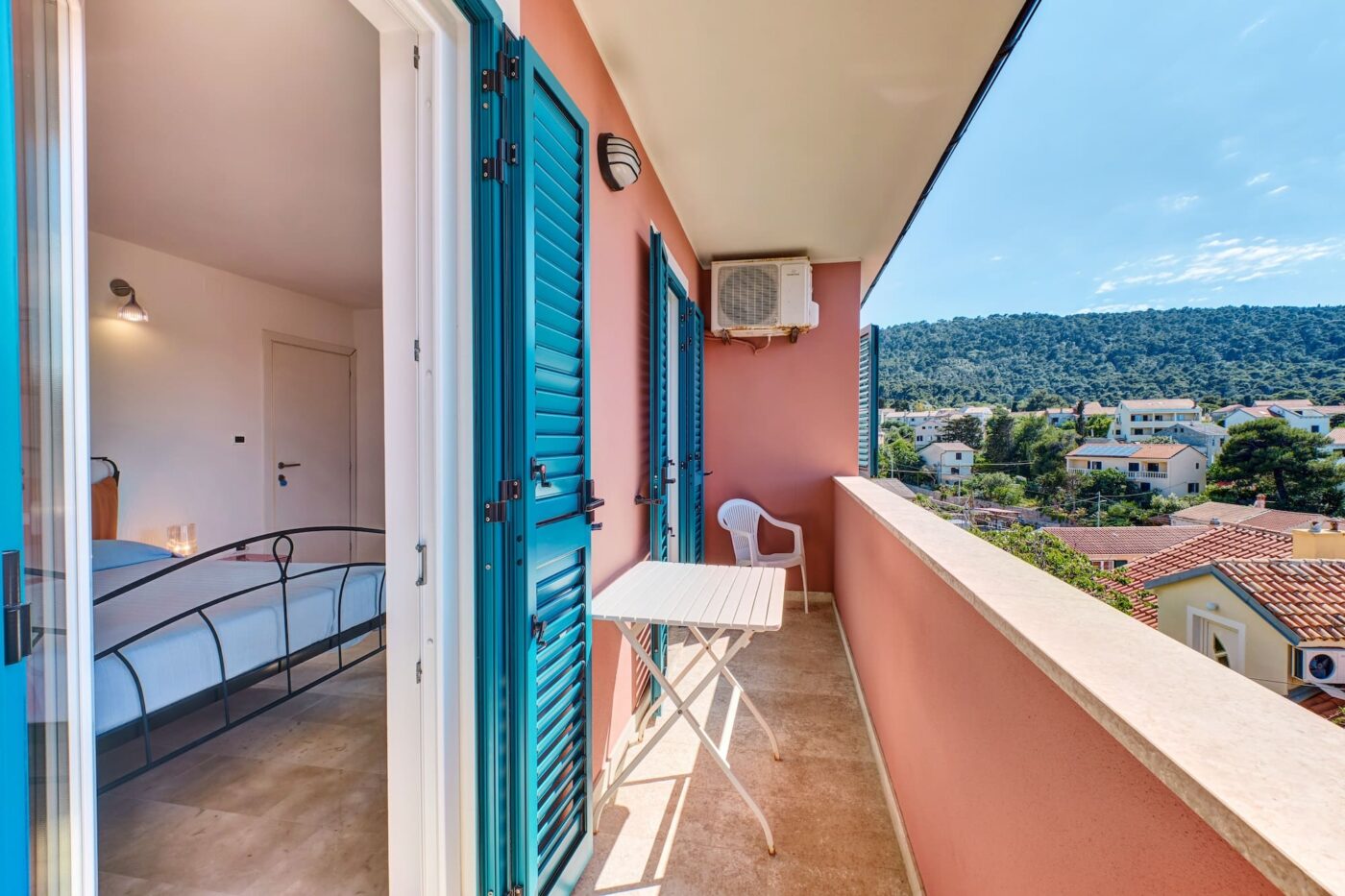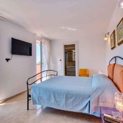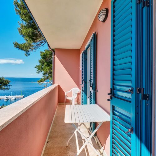 Acquamarina je prostrana i svijetla dvokrevetna soba s velikom terasom s pogledom na uvalu Rovenska i okolno brdo, opremljena kupaonicom s tušem, WC-om i bideom, sušilom za kosu, satelitskom TV, hladnjakom, klima uređajem i pristupom internetu (Wi-FI).